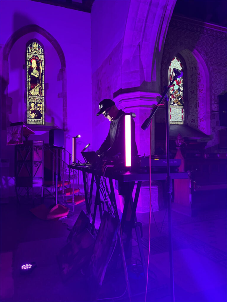The tour’s spark came from a 2024 UK festival called Sun & Moon, where Harper performed an impromptu set of Ambient Girl tracks. “People told me the music made them feel grounded, enlightened, and loved,” he said. He’d also made contact with the Churches Conservation Trust, which manages disused but not deconsecrated churches—some over 1,000 years old and with roots in older spiritual traditions. “So I figured I could just do a really simple tour,” Harper explained, “take my portable deck, some speakers, and bring ambient music into these sacred spaces.”