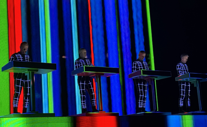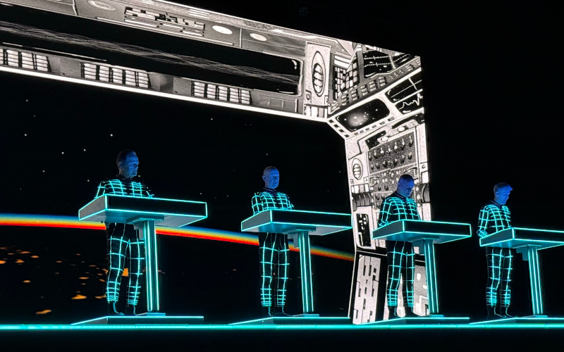 From there, the set moved into selections from The Man-Machine, Electric Café, and Computer World. “Computer Love” and “The Model” still resonate, especially given today’s ever-blurring boundary between human and interface. “Neon Lights” slowed things down, bathing the stage in soft color, its quiet optimism contrasting with the darker tone of what came next.