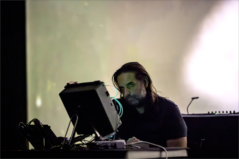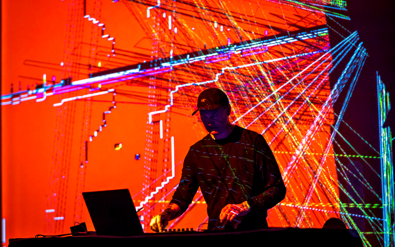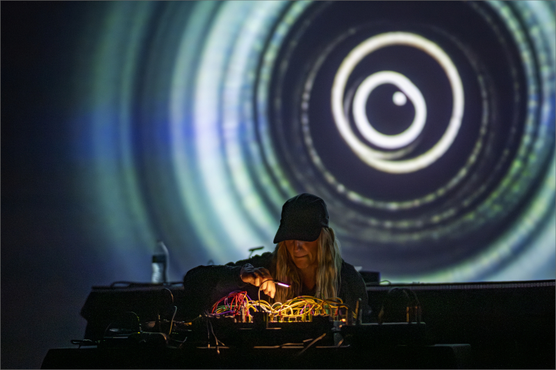 I’d clocked Tom Hall here in ’22, Algorithmic Art Assembly, his performance cutting through the noise like a laser through smoke. During the lockdown years—that great flattening—Tom had assembled crowds in virtual space, streaming his Max/MSP consciousness live, building patches in real-time while disciples watched the code bloom into sound. Tonight he’d architected something else: five acts, each one jacked into the venue’s neural system—surround arrays and thirty-foot screens that turned the space into a sensory weapon.