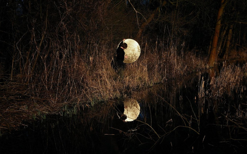 In this beautiful collection of tactile drones and electronic tonalities infused with natural sounds and rhythms, Felicity Mangan combines field recordings, electroacoustic composition, and electronic music techniques to create immersive, quasi-bioacoustic music aided by digital audio tools. The six pieces on String Figures sample and combine the resonant timbres of strings and electromagnetic textural fields with field recordings from wetlands. She has the moon with her, by the water. From the picture it could be a pond or slow moving river, I can almost hear the slow moving water. What are she and the moon up to? Listen, so close to the water’s edge, lush in the brush and abundant sounding flora. There is a strong reflection in the water, she has a twin image. These elements were shaped through digital processing into polyphonic, angular assemblages, ranging from austere minimalism to sumptuous drones and elegiac ambience. Her compositions have been presented in multichannel installations, live performances, site-specific settings, and published works on labels such as Longform Editions, Mappa Editions, One Instrument, and Warm Winters, among others.