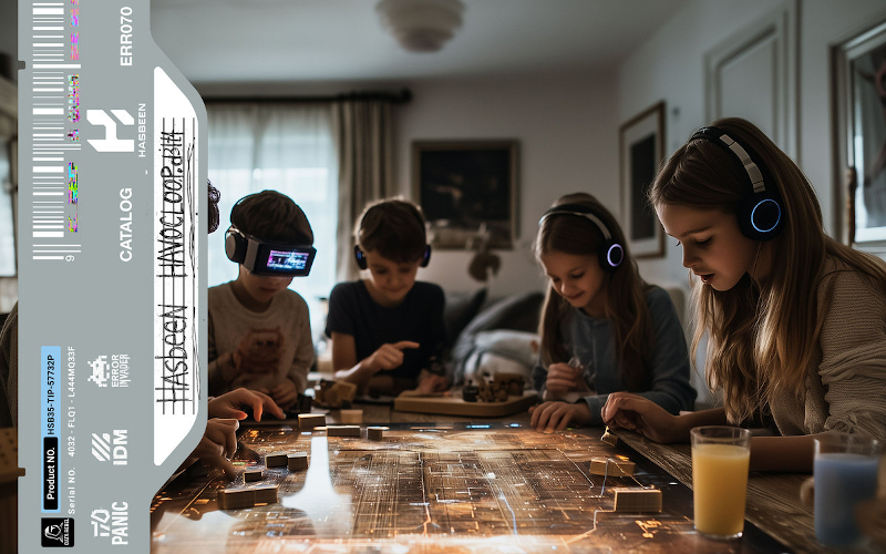 > Players play on a **rectangular-grid touchscreen board** synced to wireless headsets + optional VR/Mixed Reality overlays.